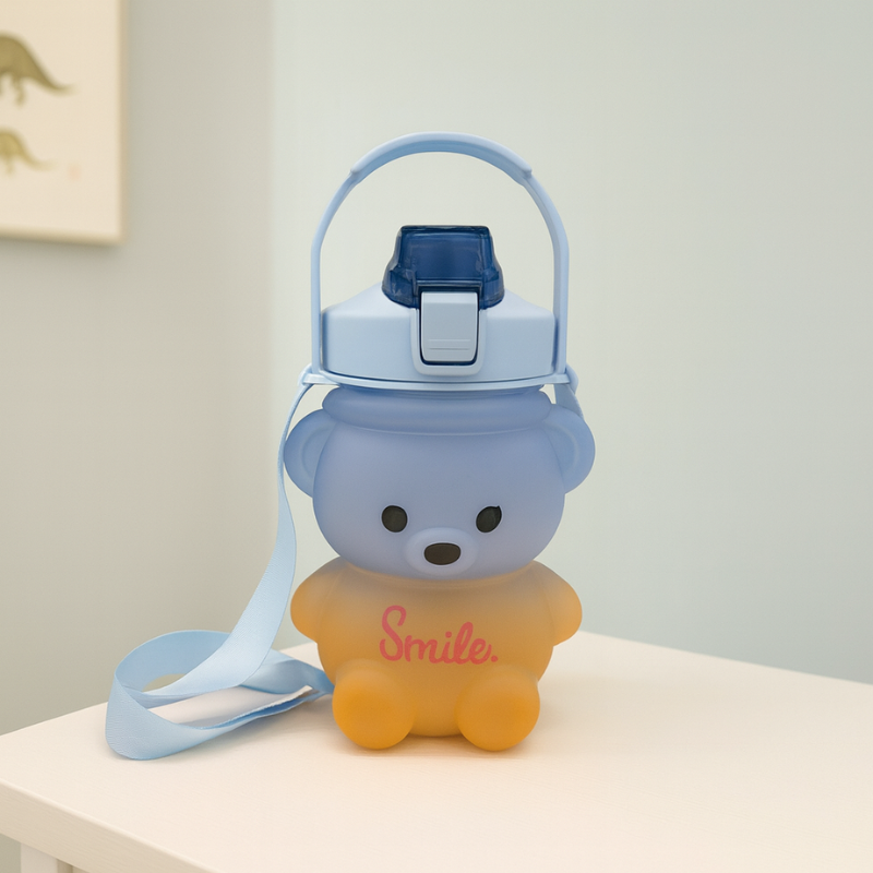 The Summer Bear Water Bottle with Straw is specially designed for babies and toddlers. Its built-in straw allows easy sipping without tipping, making it safe and convenient for daily use at home, daycare, or on the go.
