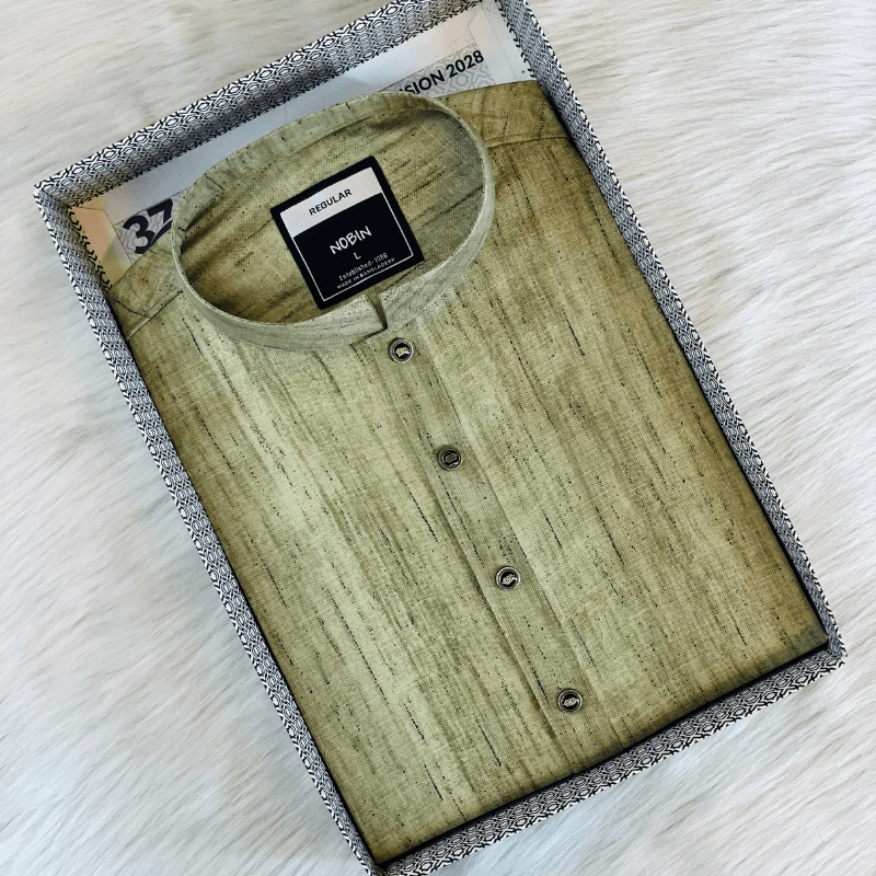 Step into effortless style with the NOBIN Olive Green Premium Cotton Panjabi, a timeless blend of minimalism and sophistication. The textured cotton fabric offers a natural look, enhanced by a calming olive hue that reflects understated elegance. Perfect for Eid, Puja, weddings, or casual Fridays, this Panjabi delivers comfort, confidence, and class in every stitch.