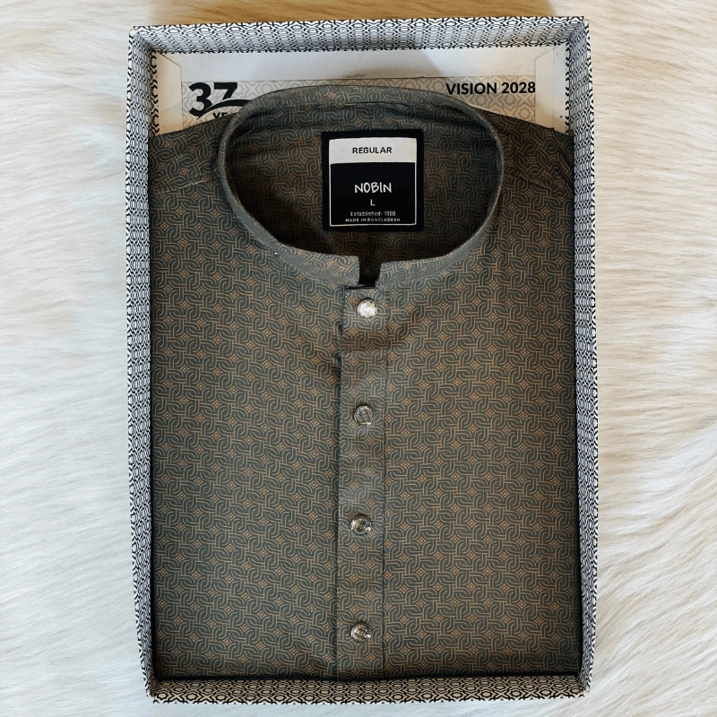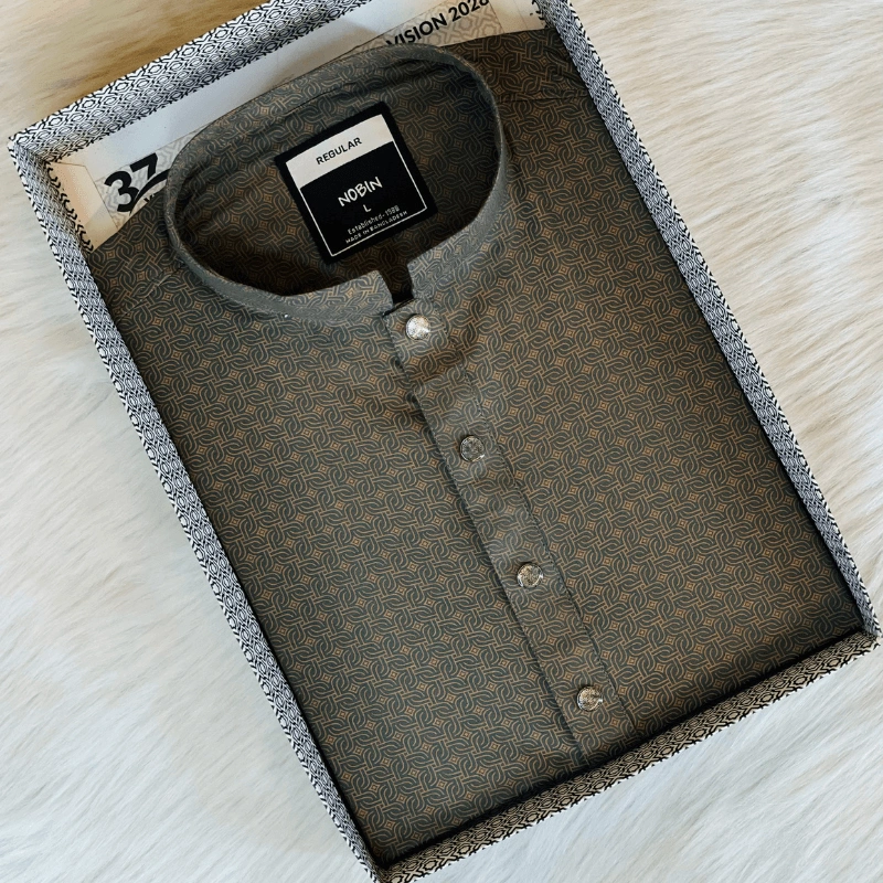 Step into timeless style with the NOBIN Men’s Premium Cotton Panjabi in olive brown. Featuring a modern maze-style geometric pattern, this Panjabi perfectly balances traditional charm and modern design. Ideal for Eid, weddings, or family gatherings, it reflects a refined taste for men who appreciate elegance and simplicity.